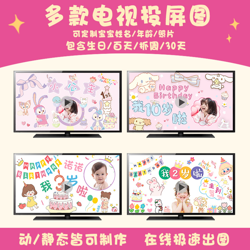 32.8百日宴布置女孩迎宾牌宝宝生日周岁满月KT板装饰百天大头卡通海报