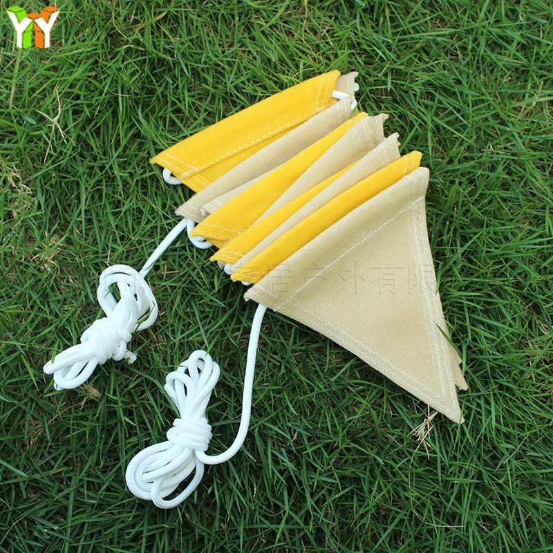 现货户外露营帆布彩旗 营地装饰三角旗子 生日派对拼色吊旗串旗