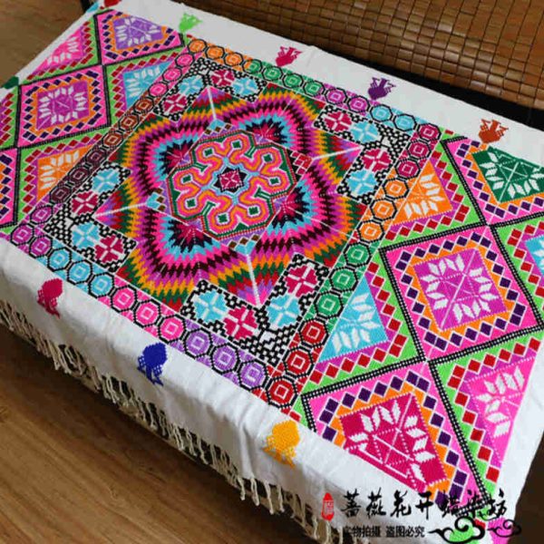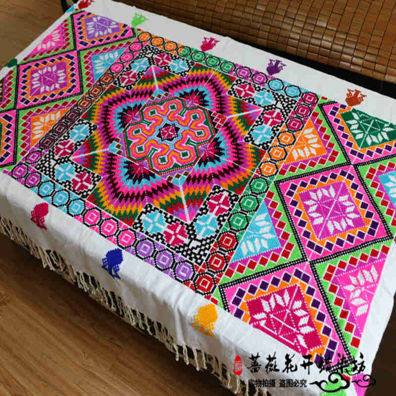 民族风手工十字绣布艺民间花刺绣沙发垫艺克茶几布桌布塔吉手工