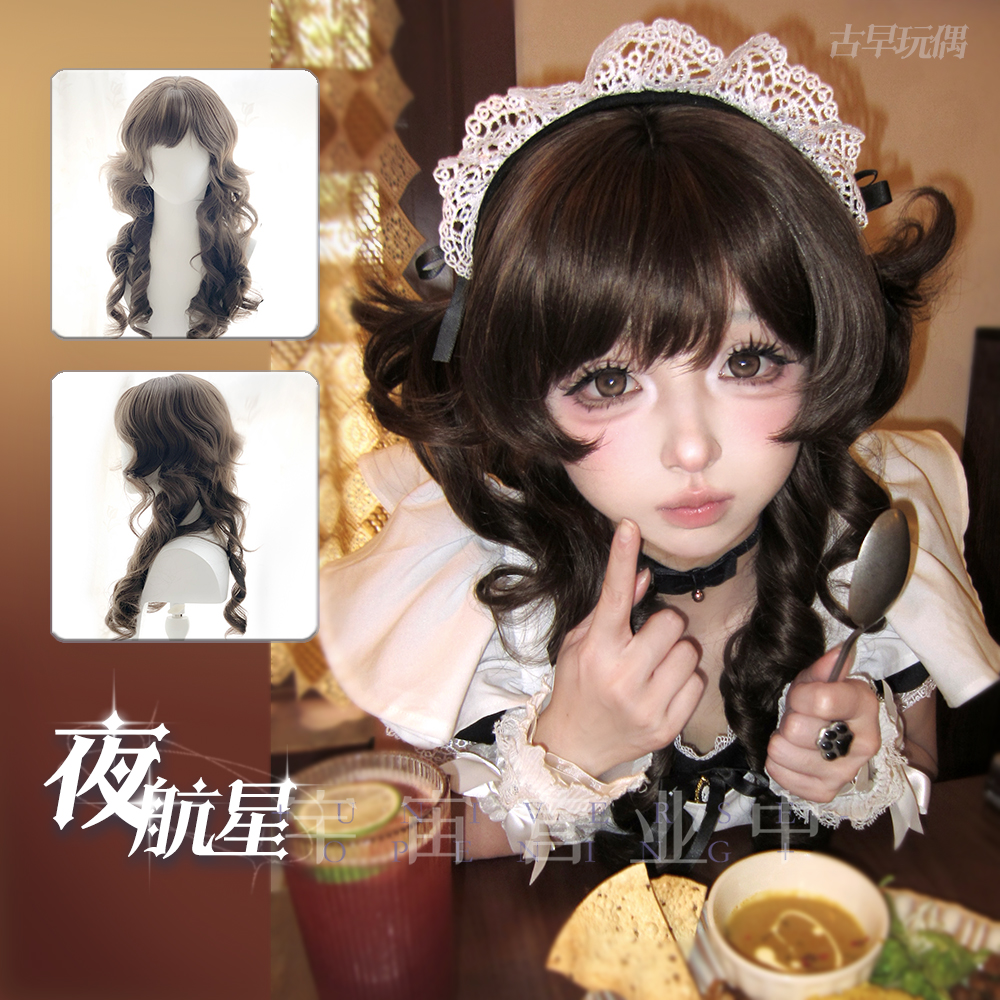 「夜航星」古早棕亚文化氛围感日系水母卷动漫齐刘海lolita长假发