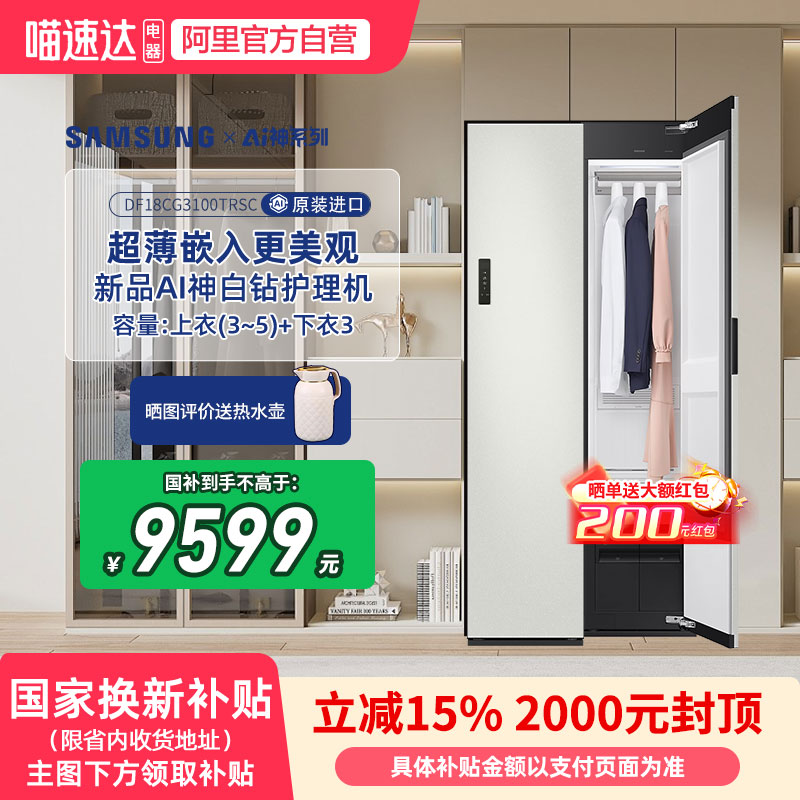 18000原装进口全民补贴三星AI神黑钻镜面蒸汽除菌干洗机衣物护理机CB87