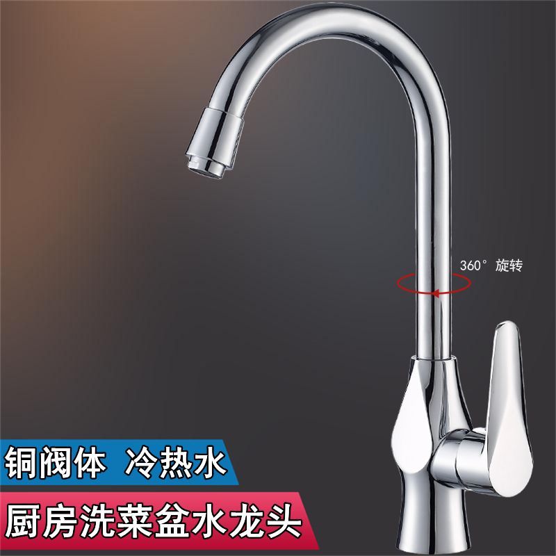 16.5厨房水龙头冷热两用水槽洗菜盆洗碗池全铜单冷万向旋转增压防溅水