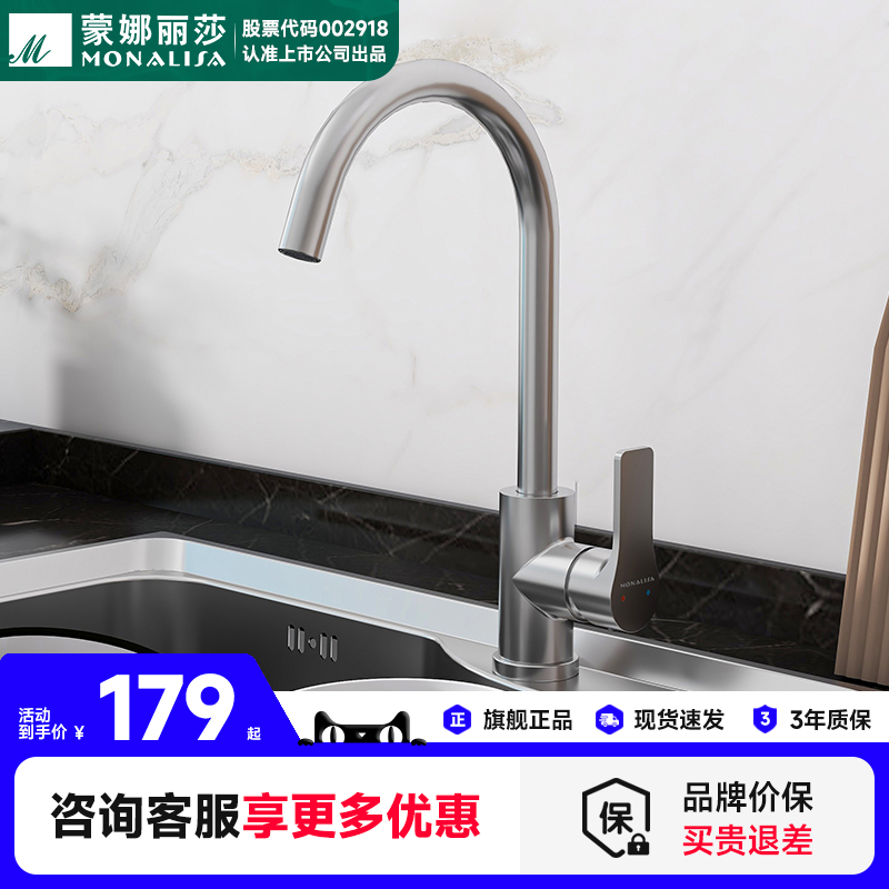 223.75蒙娜丽莎厨房水龙头洗菜盆冷热304不锈钢可旋转水槽龙头冷热通用