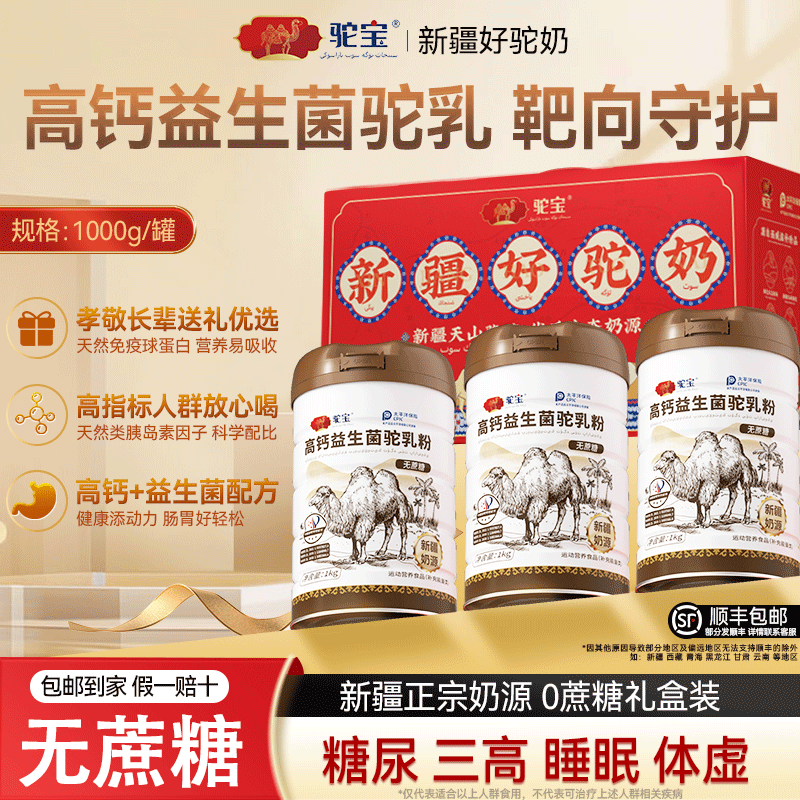 98骆驼奶粉乳新疆官方旗舰店无蔗糖中老年高钙益生菌正品官网宗三高