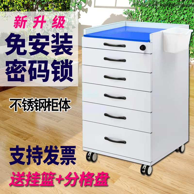 382牙科移动边柜不锈钢药柜口腔医疗边柜诊所器械小推车柜美容柜木柜