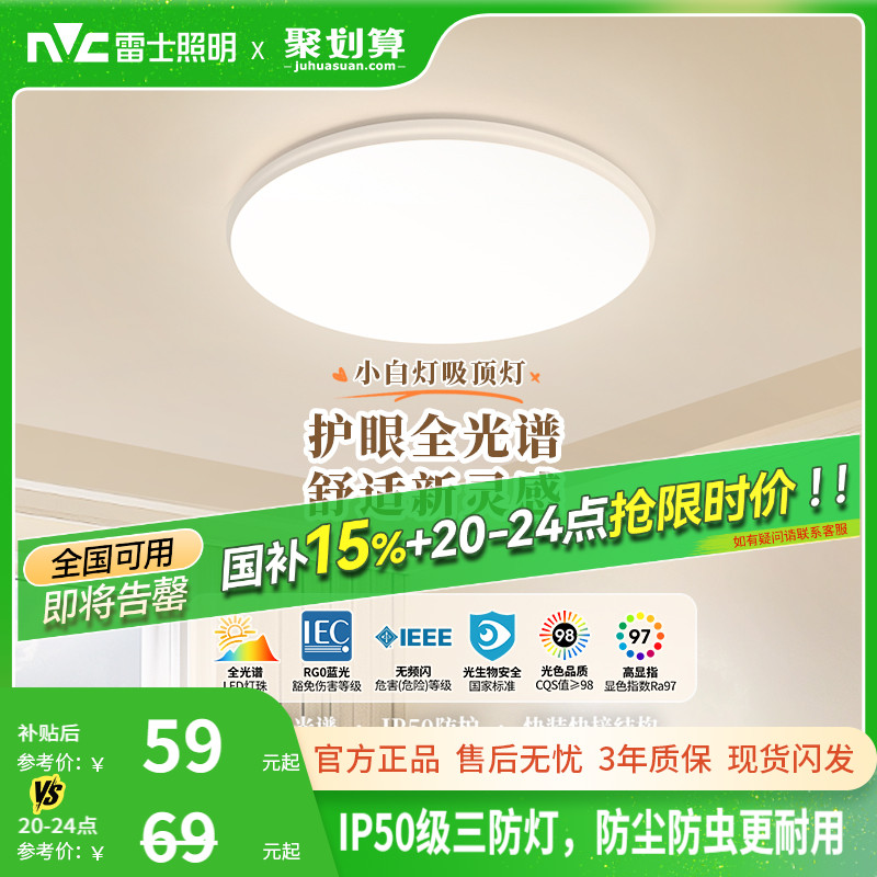14.88雷士照明led吸顶灯超亮卧室阳台餐厅圆形简约过道走廊厨房卫生间