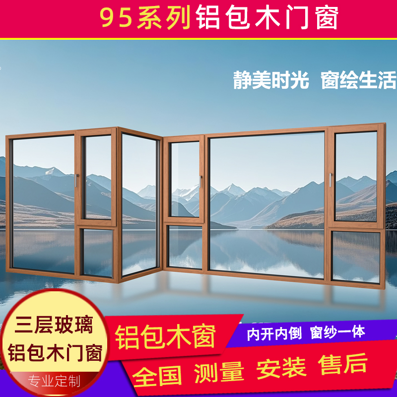 100北京铝包木门窗纱一体系统窗封阳台平开隔音窗厂家直销阳光房定制