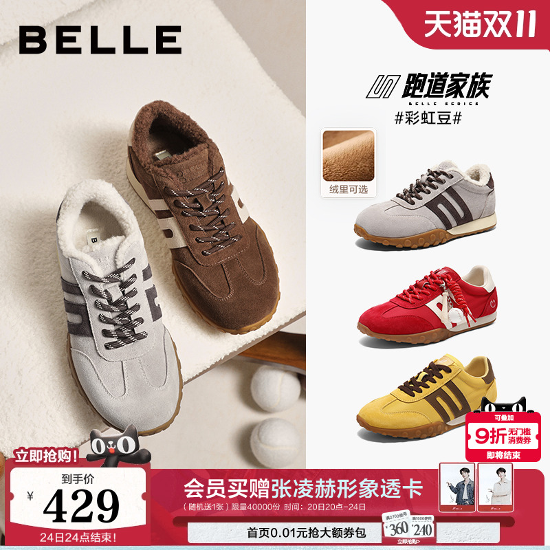 623张凌赫/董璇同款百丽彩虹豆红色德训鞋新款棉鞋加绒休闲阿甘鞋预