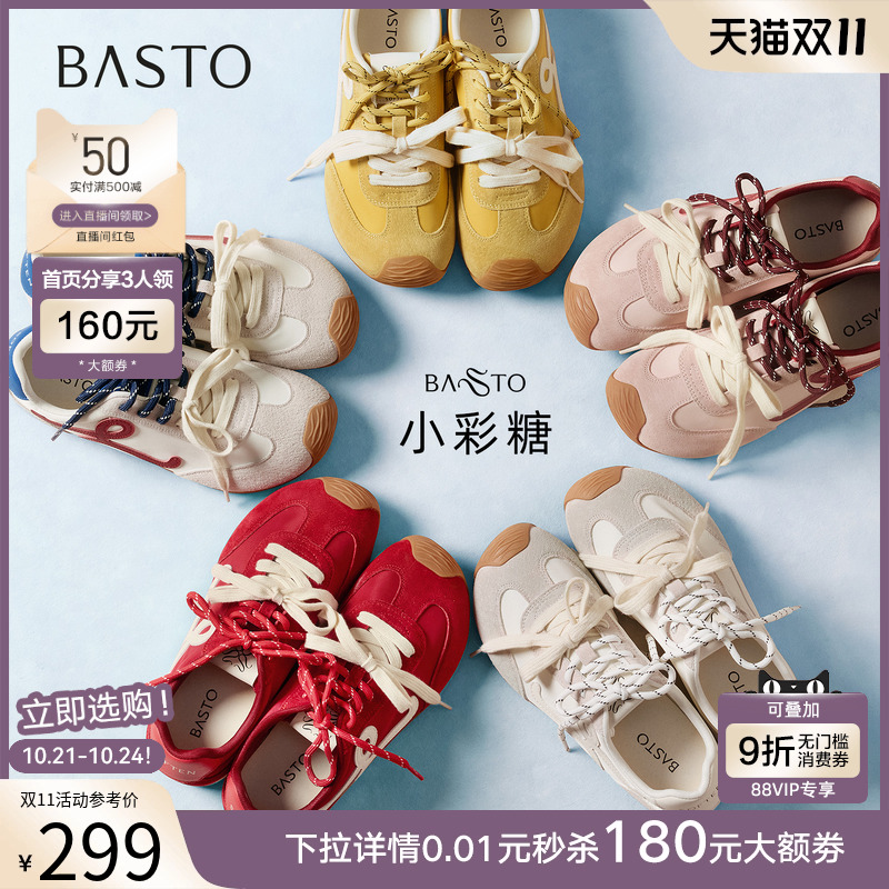 659【李佳琦直播间时尚节付定金】百思图小彩糖德训鞋运动休闲阿甘鞋