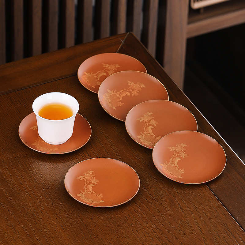 275里作 创意水月盖碗超薄大漆红轻奢小套装整套功夫茶具礼盒小礼品