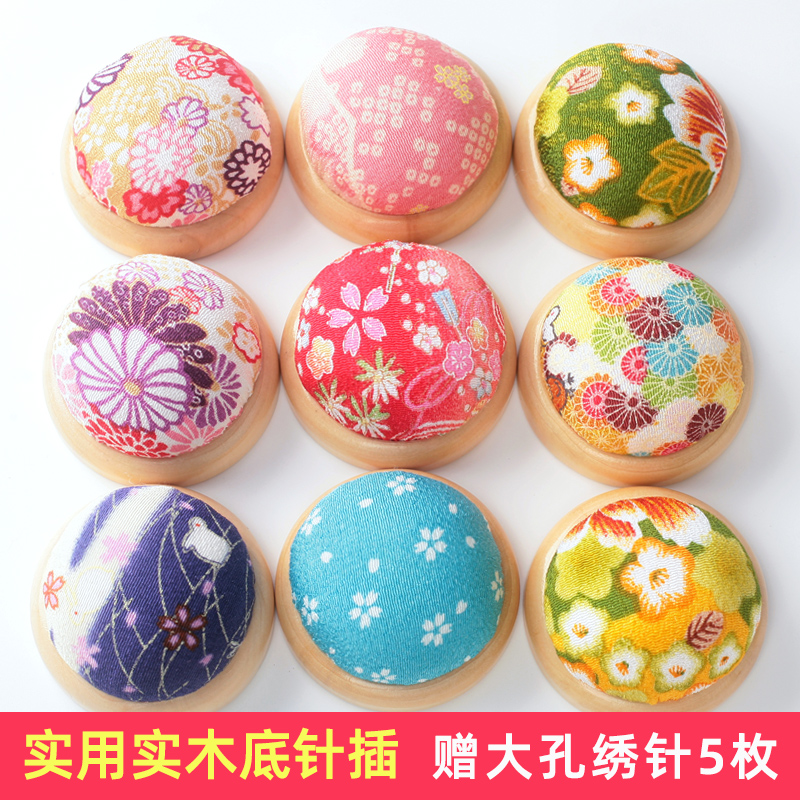 2.98针插包手工布艺diy十字绣工具插针包原木底座针座 针扎彩色珠针插