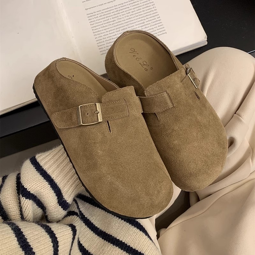 37.8"小土豆天菜"软皮松果勃肯鞋女春秋复古厚底一脚蹬外穿包头半拖鞋