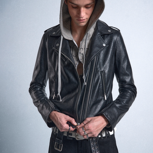 568noEmosen(noE)"VOID"双拉链可调节进口肌理皮摇滚机车修身皮衣