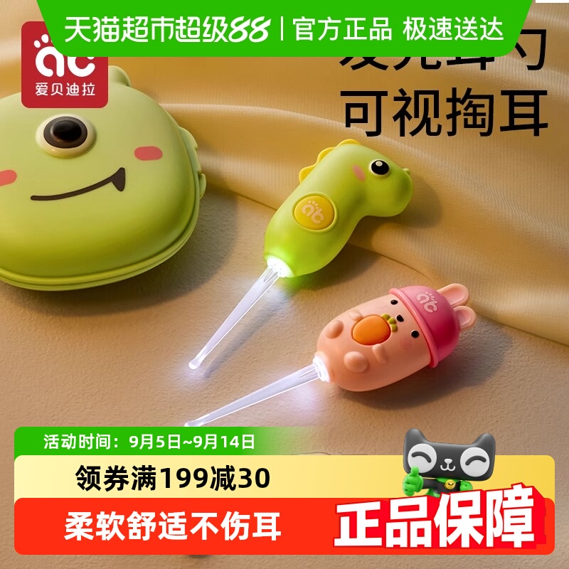 18.9包邮】爱贝迪拉婴儿掏耳勺儿童发光可视挖勺软头耳屎清理掏耳朵灯