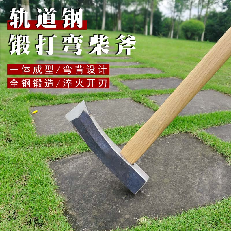 78足铁匠锻打斧头劈柴专用工具斧子加重轨道钢锻打开山斧破柴弯形斧