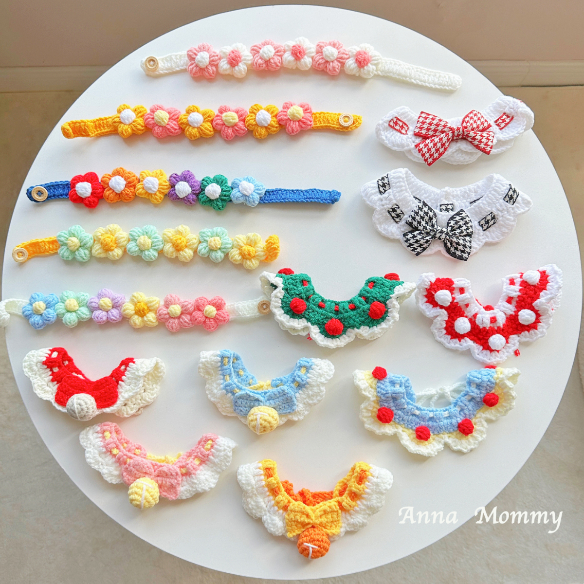 5手工毛线编织宠物项圈围嘴猫咪狗狗拍照围兜领结口水巾狗卡通装饰