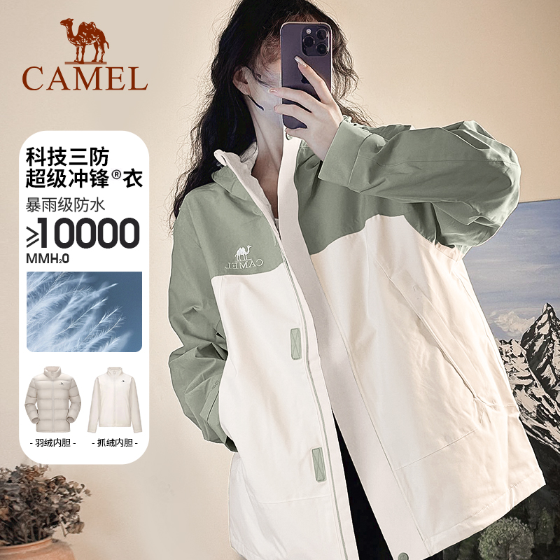 骆驼北风冲锋衣三合一男女款户外抓绒内胆防风防水硬壳登山服外套