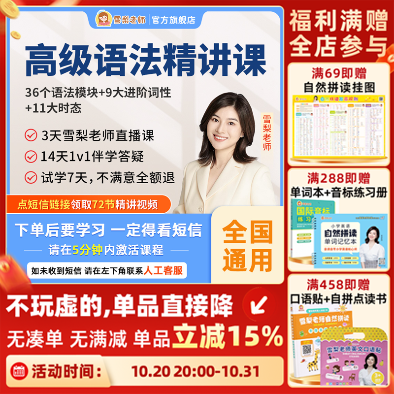 【7天内可退换】雪梨老师中高级英语语法中学语法学习视频课程