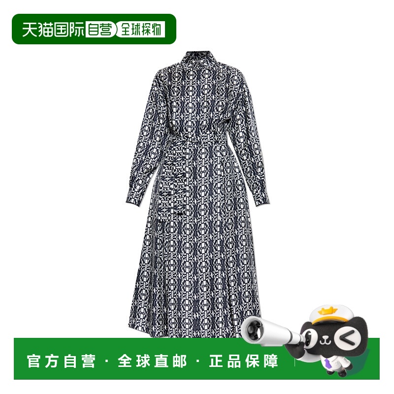 Fashionable printed short sleeved V-neck lace up dress长裙复