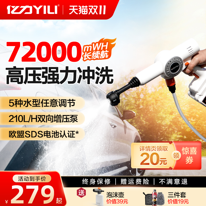 超强高压洗车机水枪增压无刷电机无线便携充电锂电池洗车浇花神器
