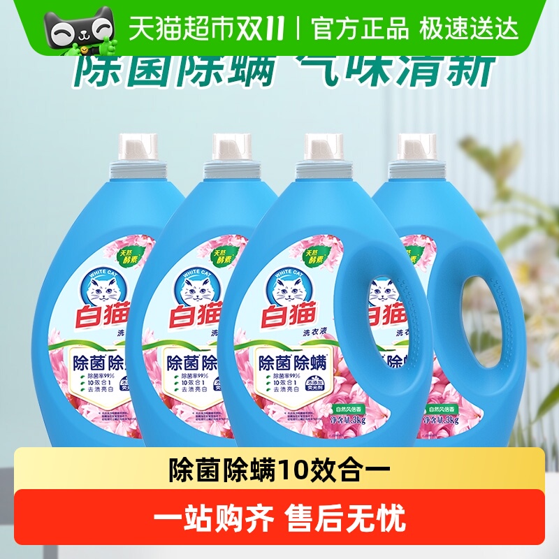 168【下拉享优惠】白猫无磷洗衣液除菌除螨家庭装3kg×4瓶