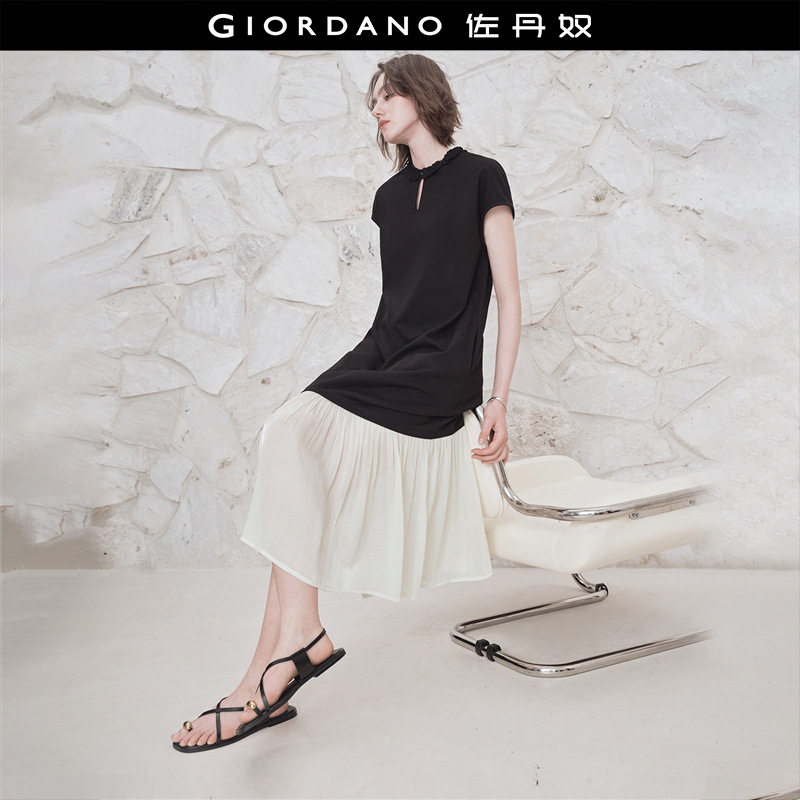 99.9设计师款佐丹奴长袖T恤女新款舒芙蕾柔软卷边半高领上衣18325617