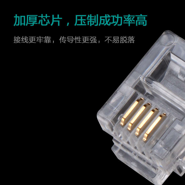 纯铜6P4C6C电话水晶头RJx11语音4芯电话线接头连接器六芯数控接头