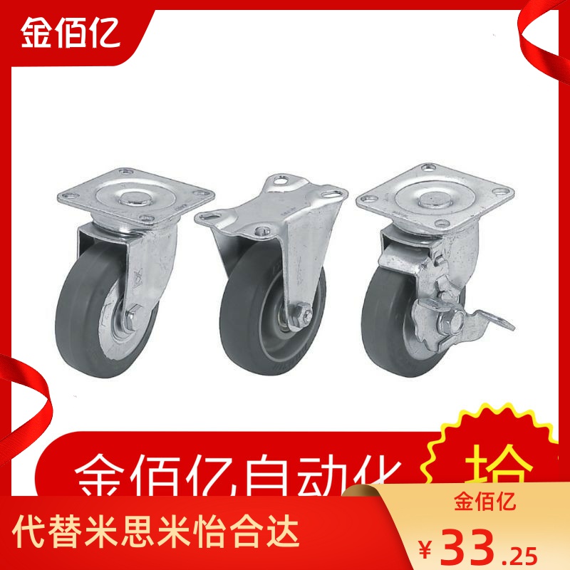 同米思米橡胶脚轮CSPJ/CSPK/CSPJS75/100/125-R万向带刹车固定轮