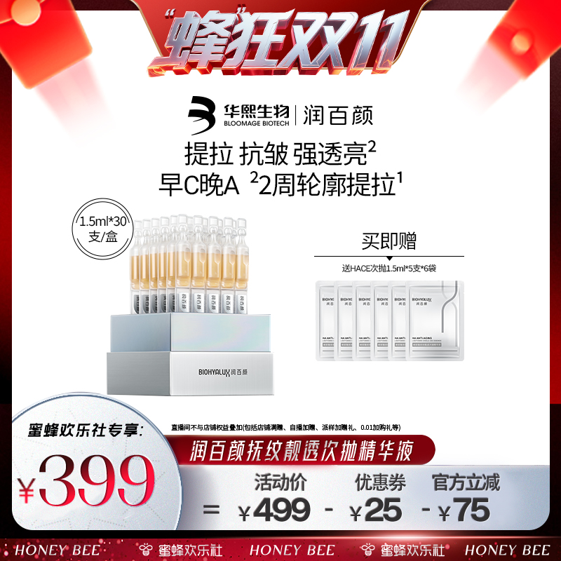 499【蜂狂双十一】润百颜HACE次抛精华早c晚a抗皱紧致玻尿酸华熙生物