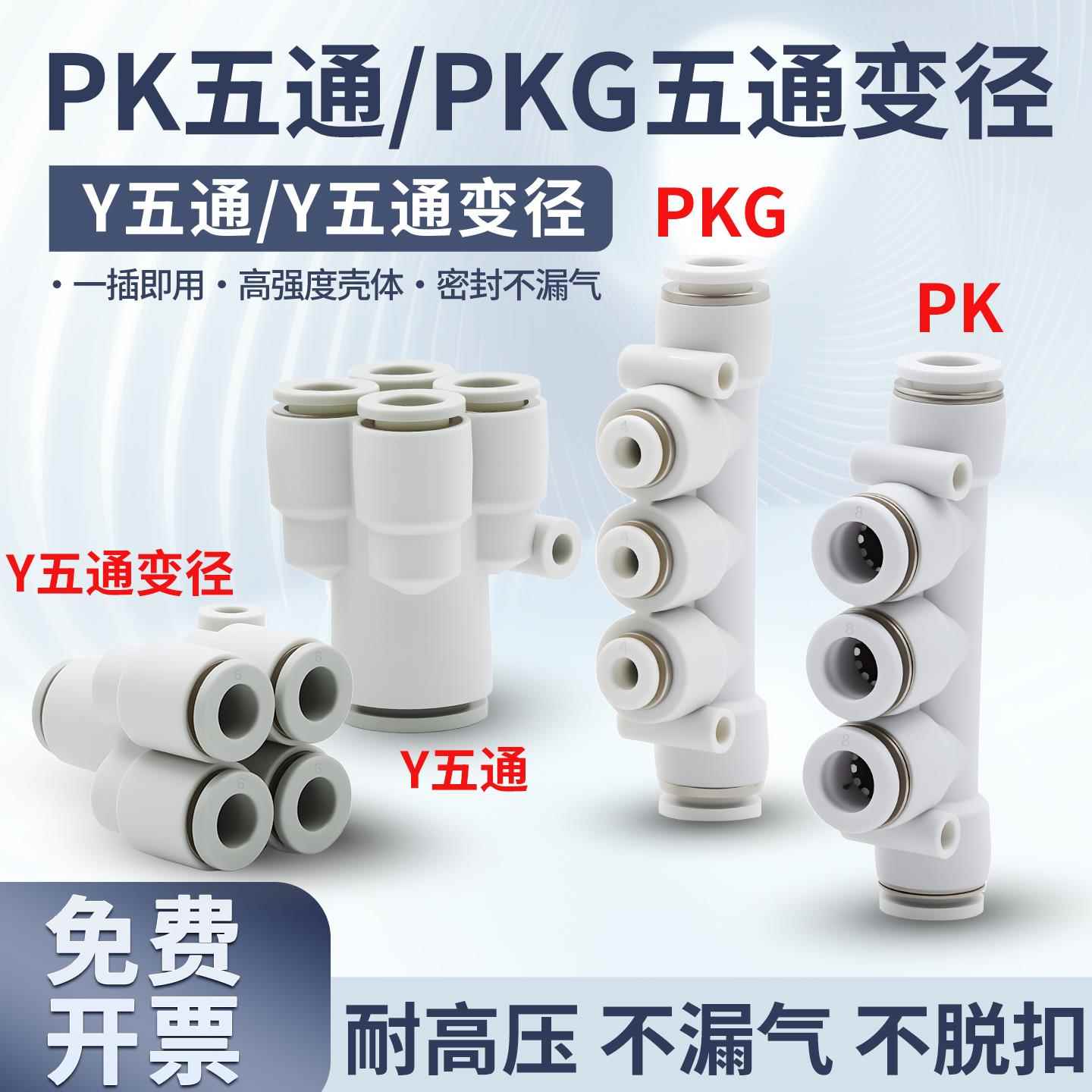 28.96五通PK快接头4 6 8 10 12变径PKG5-3异径Y型5通PRG08-06白色快插