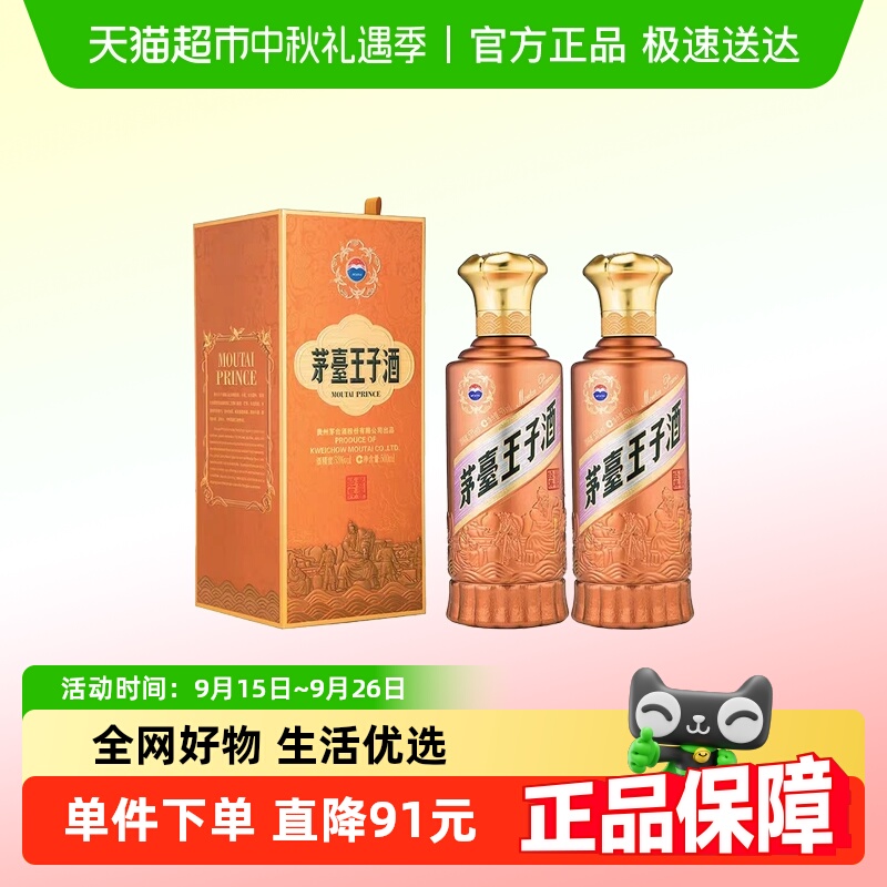 800茅台(MOUTAI)茅台王子酒新版酱香经典53度500ML*2 送礼佳选