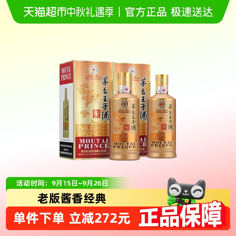 338【官方旗舰】贵州茅台王子酒金王子53度酱香型白酒500ml*2瓶装