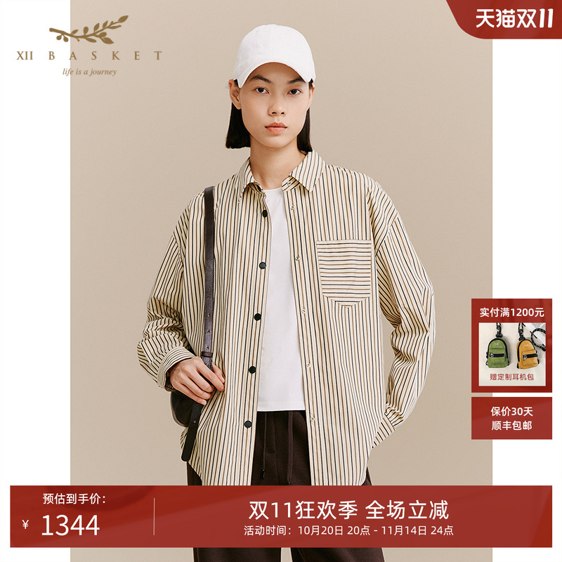 1680XII BASKET十二篮商场同款25冬新款宽松舒适百搭条纹杏色衬衫女