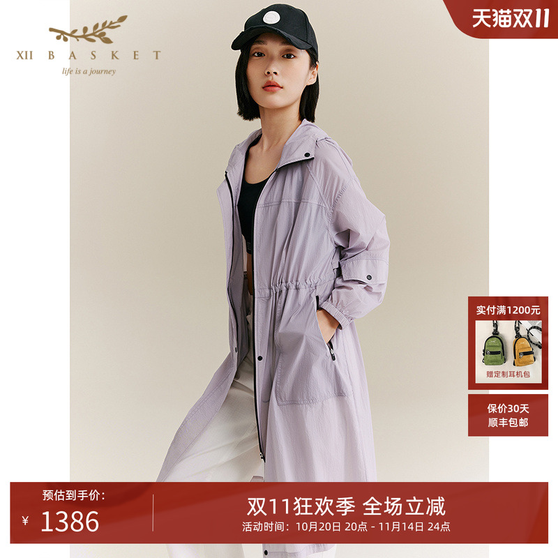 1910XII BASKET十二篮2025秋新款高级感连帽双层工装烟灰紫长款外套女