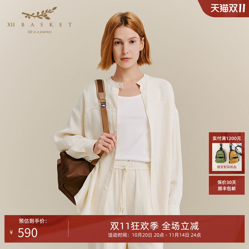 1331XII BASKET十二篮2025秋新款休闲宽松落肩透气亲肤简约长袖衬衫女