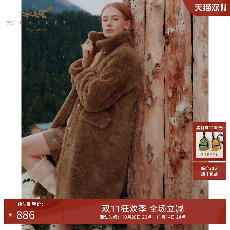 1713XII BASKET十二篮商场同款冬款百搭舒适大衣保暖中长羊羔毛外套女