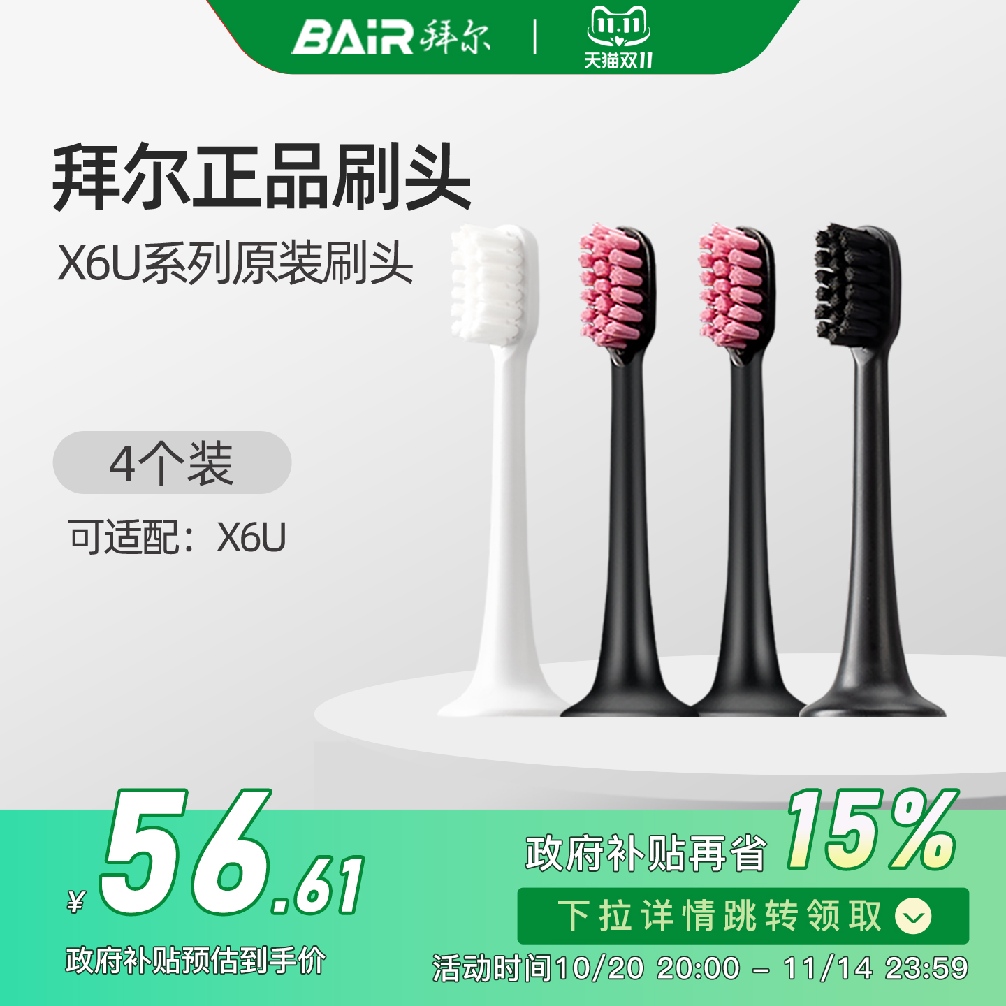 89拜尔电动牙刷头原装通用替换刷头4支装适配X6/X6U系列非拜耳
