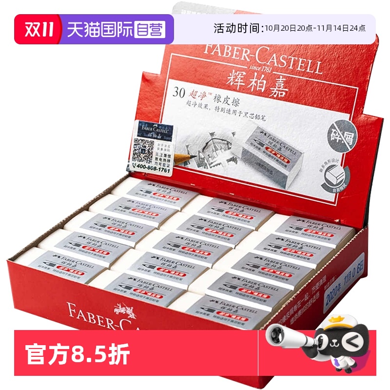 7.8【自营】辉柏嘉橡皮超干净橡皮擦小学生专用无碎屑像皮不易留痕少屑儿童擦字成线幼儿园美术生素描绘画象皮檫