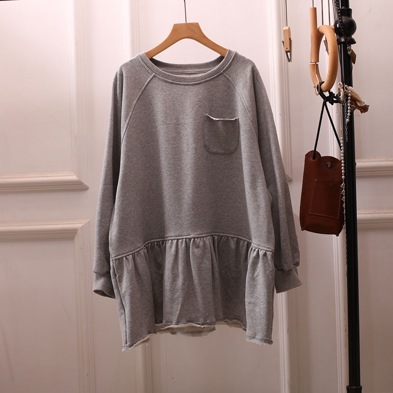 89.9秋冬拼接荷叶边中长款卫衣连衣裙宽松百搭小清新大码胖MM设计感