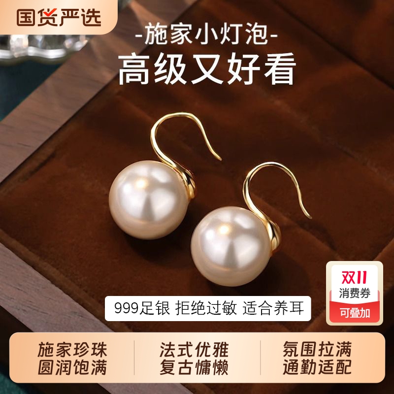 46.8S999足银施家高跟鞋仿珍珠耳环女小众设计高级感耳钩耳坠气质耳饰