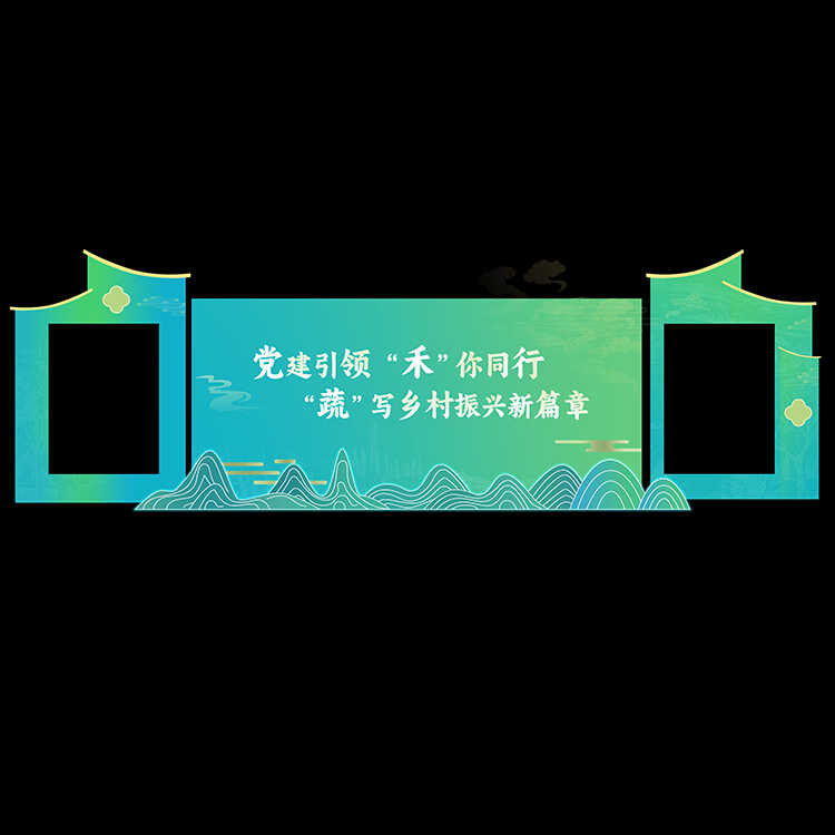 150绿色风景山脉主题图简约古风古韵插画绘画图层手绘原画高清静态图