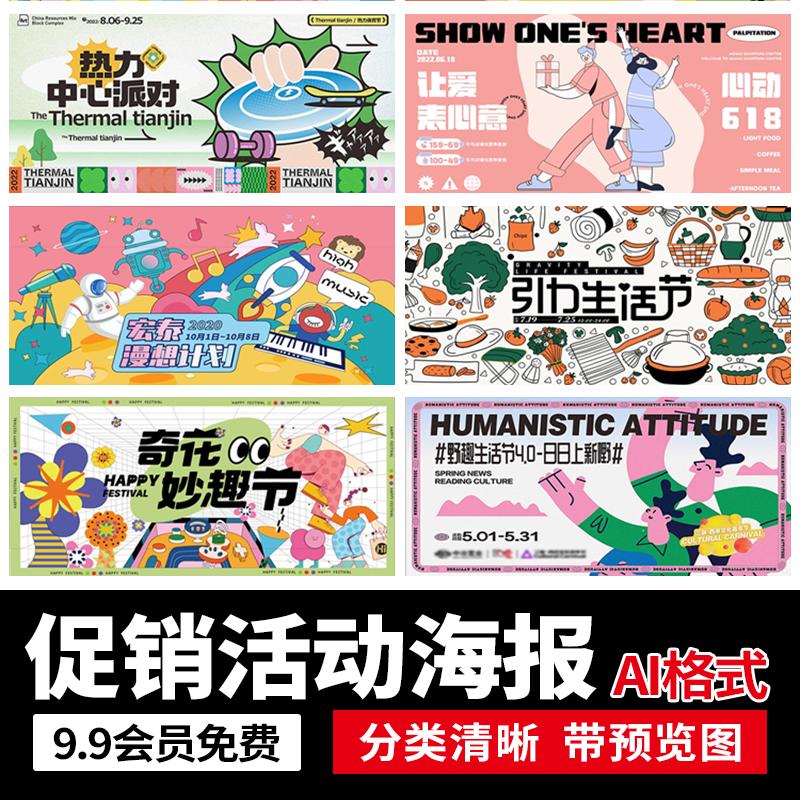 潮玩购物节活动促销市集艺术节插画海报kv展板模板ai设计矢量素材