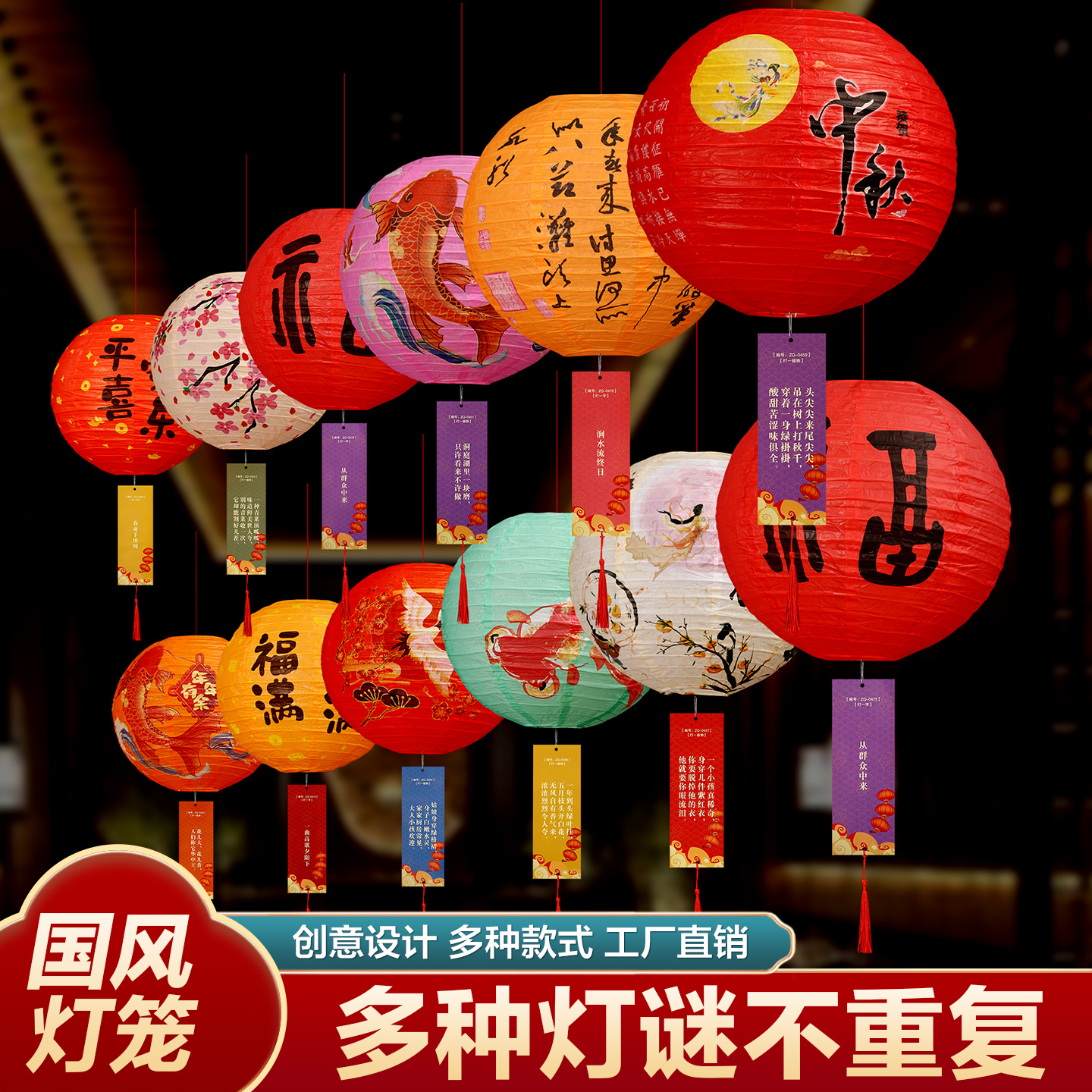 4.8中秋节灯谜灯笼国庆装饰字谜卡片吊饰幼儿园商场店铺场景布置道具