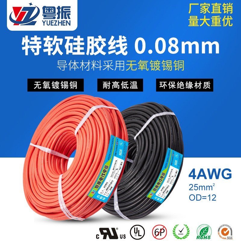57.6粤振特软耐高温环保硅胶线4AWG25平方硅胶电线镀锡编织硅胶铜芯线