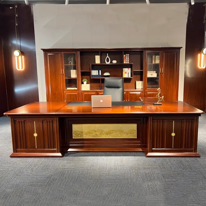 1590老板桌总裁桌新中式实木贴皮油漆大班台董事长总经理办公桌椅组合