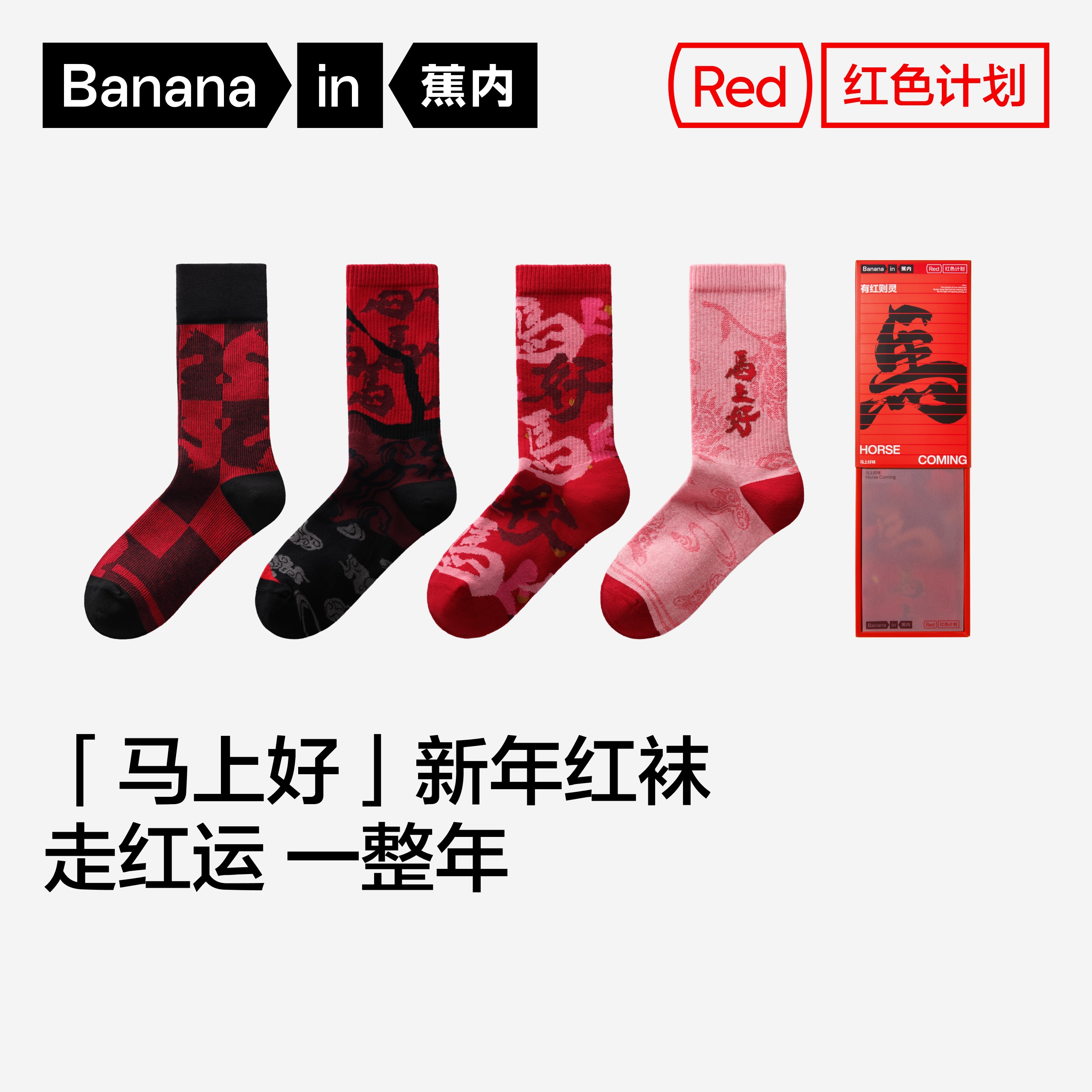 蕉内红色计划520Color长筒袜男女情侣袜子结婚礼物本命年马年棉袜