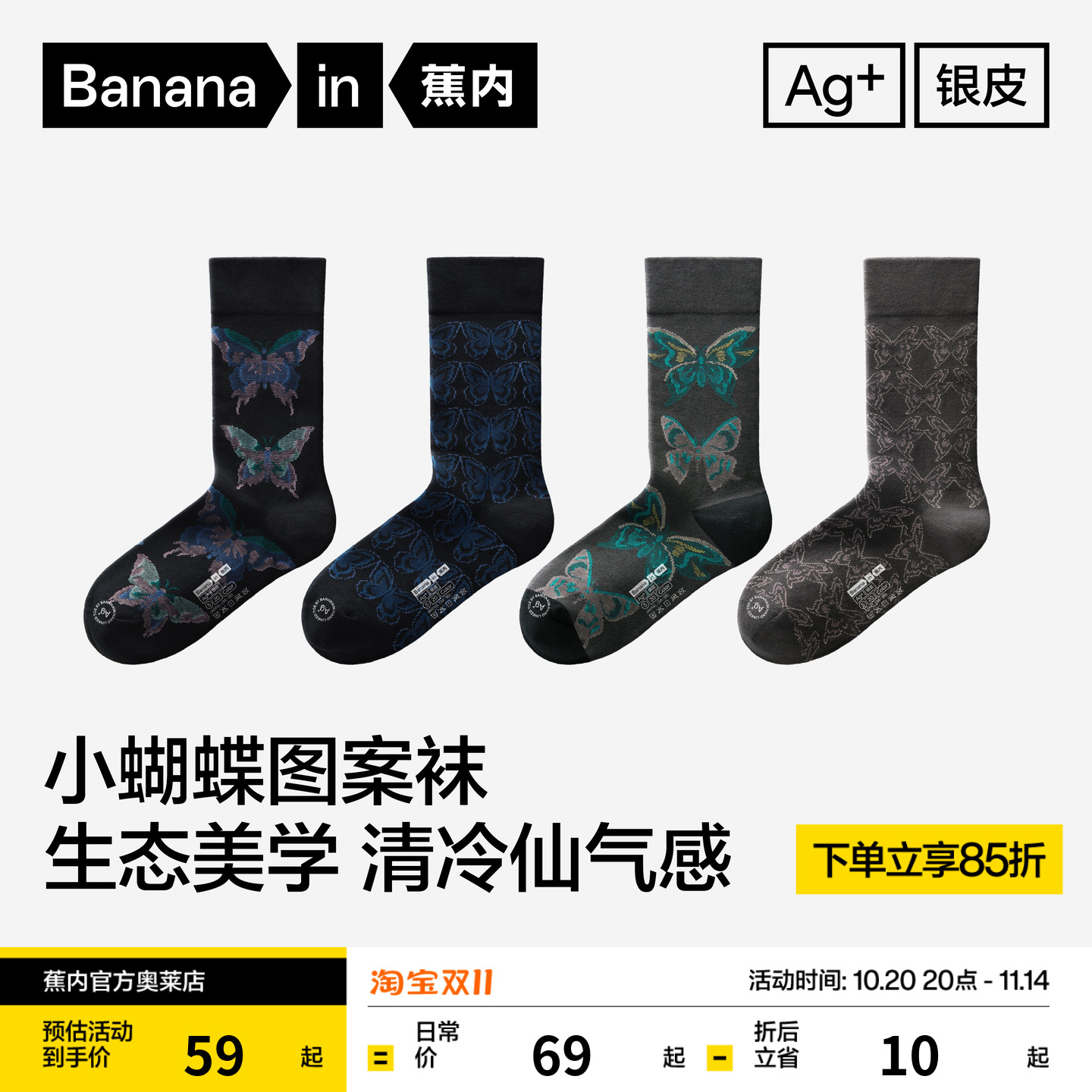 697A抗菌|蕉内银皮520Color女士袜子蝴蝶图案长袜个性潮流新款棉袜