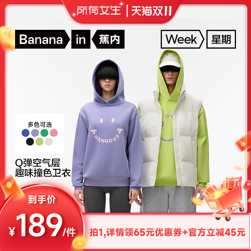 299蕉内星期520Color男女同款连帽卫衣印花长袖外套宽松显瘦透气休闲