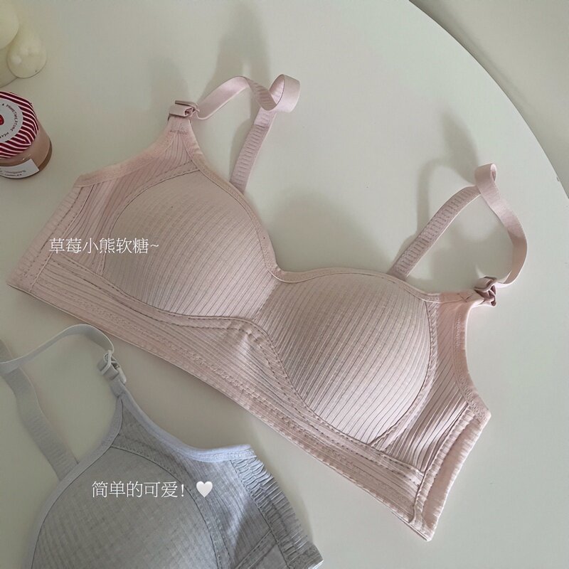 "快乐与平凡浪漫"竖条纹舒适无钢圈少女文胸小胸聚拢内衣透气