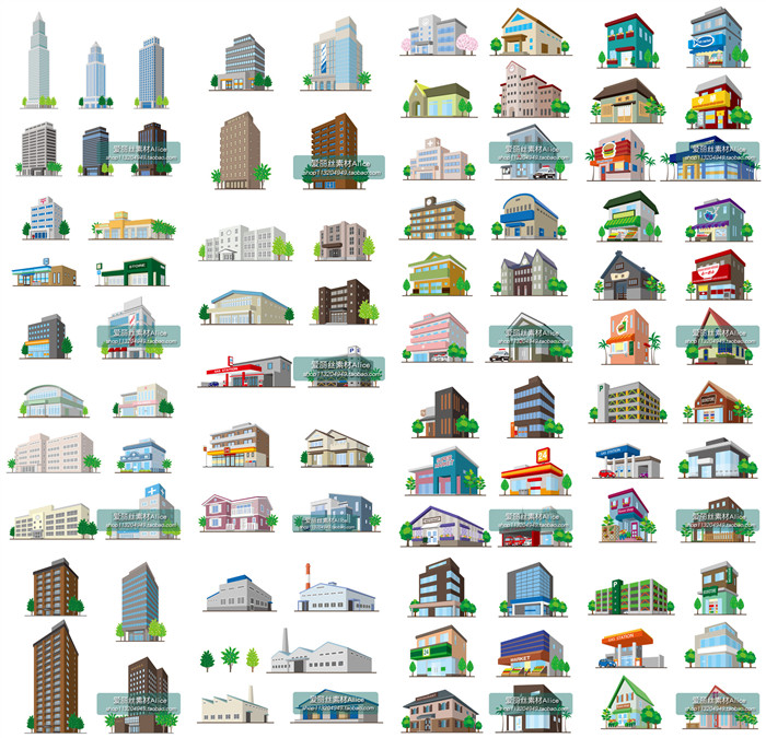 现代风格废弃卡通城镇村庄城市末世生存 unity3D场景模型素材设计